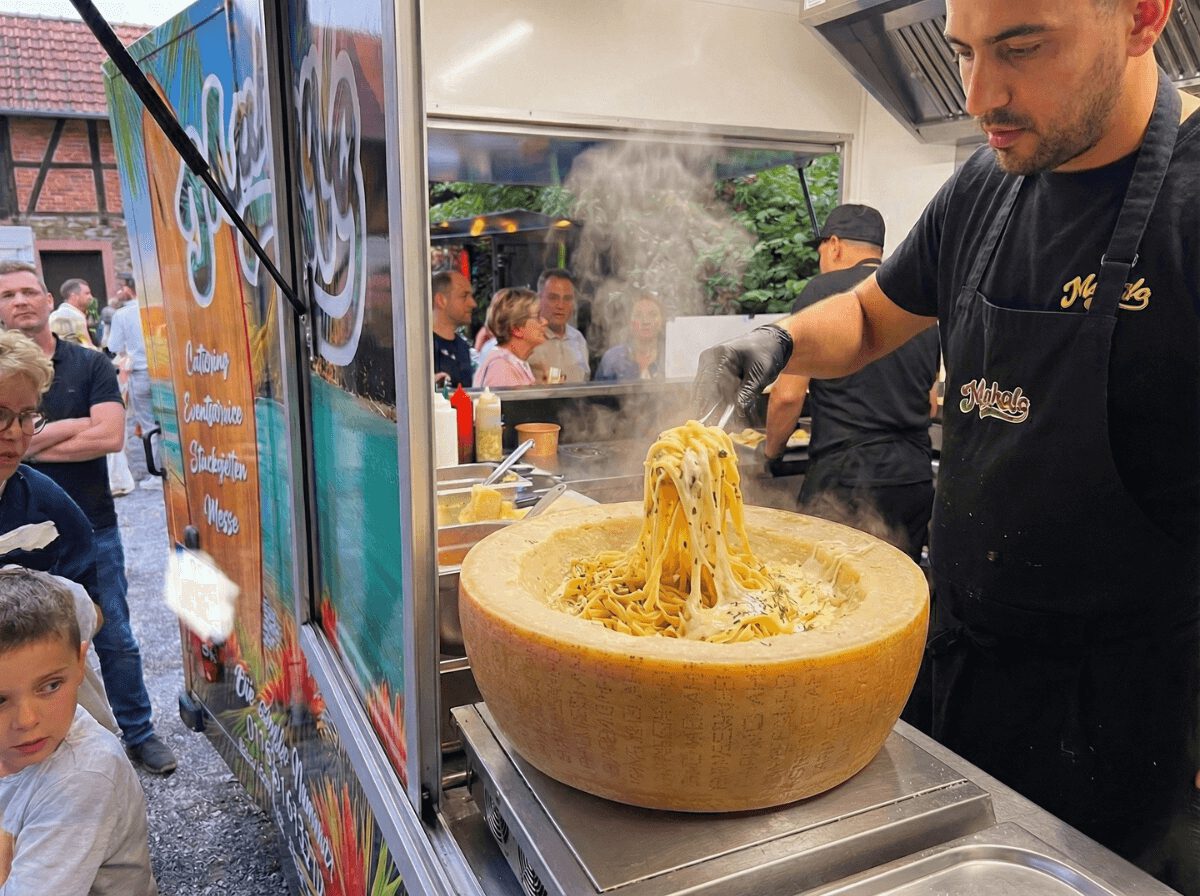 Frisch zubereitete Pasta direkt im Laib geschwenkt – cremig, aromatisch, mit individuellen Toppings